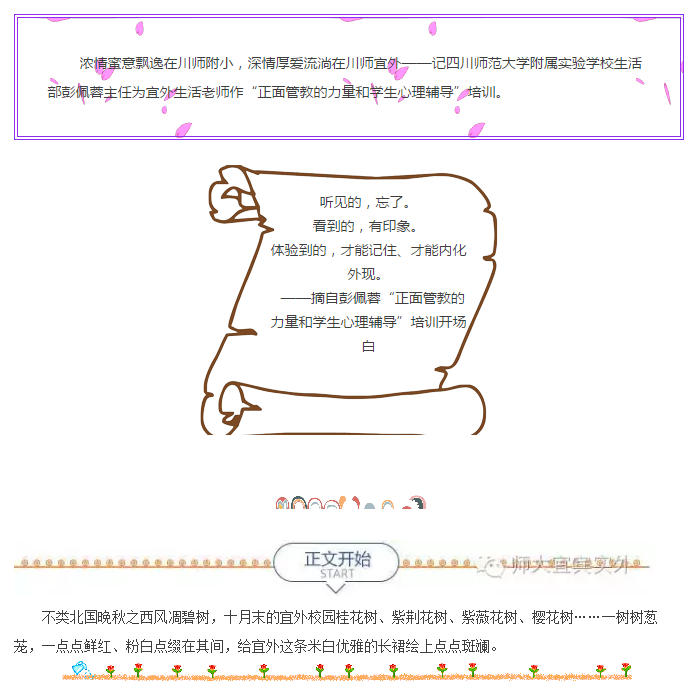浓情蜜意飘逸在川师附小,深情厚爱流淌在川师宜外