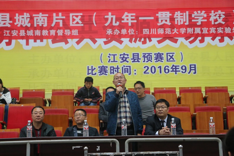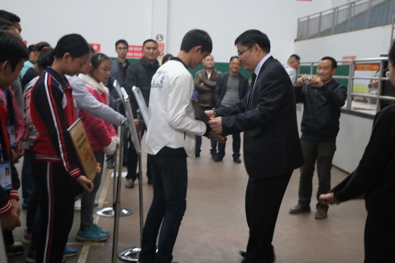 2016年10月29日上午,由城南督导组主办、我校承办的“江安县2016年中小学球类运动会城南片区预赛”在江安体育馆举行。城南教育督导组谢主任、林老师、川师宜外张学林副校长、强壮学校胡校长、怡乐学校李校长、南屏学校林校长、川师宜外初中部张映梅副主任出席运动会现场,比赛结束后城南督导组谢主任、林老师、川师实外张学林副校长等为获奖学校颁奖。