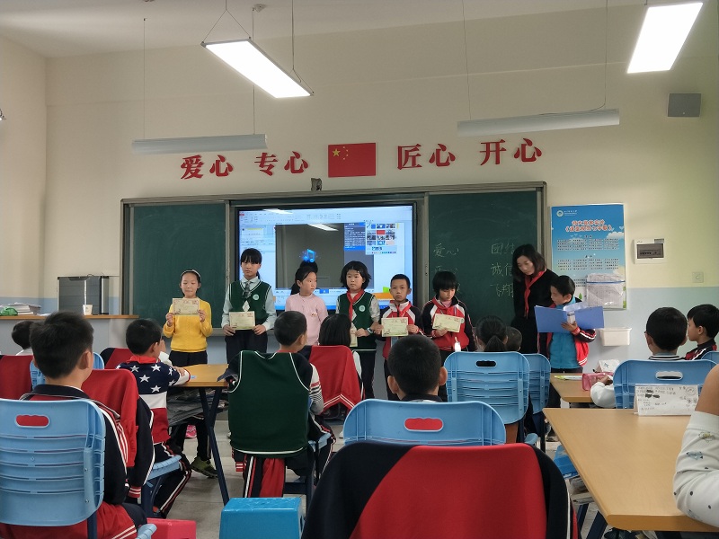 小主持人用流利的普通话介绍了周评课的活动流程,并介绍了本周表现好的前三名的小组。