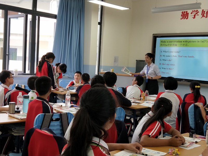 接下来,第三节课谭银花老师在初一(2)班讲授Unit2 Section A (1a-2c)。在英语组长刘思妍老师的组织下,初中部英语组所有老师第四节课在辅导书对这节课进行点评。老师们认为谭银花老师存在的问题有到台下走动的时间不够,给学生记笔记时间过少,只抽举手的学生等。建议谭银花老师把握好课堂时间,注意个别单词发音,适当调快语速。最后,英语组分年级备课,商讨其他下单元的导学案修定工作。